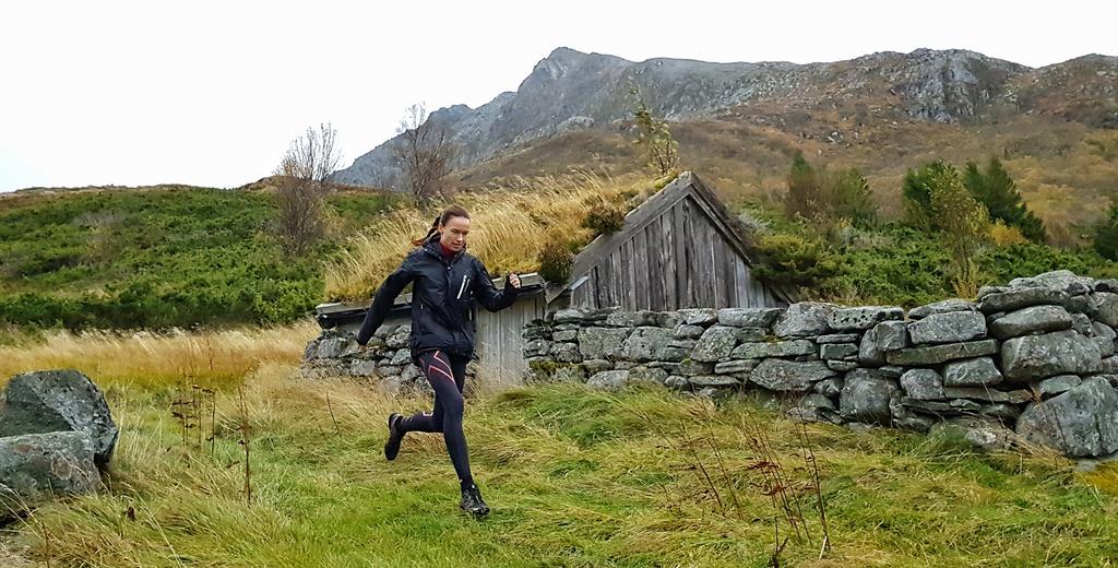 Utfordringen med et slikt vær vi hadde er å finne riktig bekledning. Det finnes ikke dårlig vær, bare våte klær, måtte vi etter hvert konstatere :) Jeg brukte en ullgenser fra Devold med hals under en lett regnjakke (har enda ikke funnet den perfekte løperegnjakken, tips taes imot med takk), 2XU tights, den tørket overraskende kjapt mellom turene, Injinji tåsokker og de samme Salomon S-lab Speed skoene hele helgen. Skoene ble gjennomvåte, men var likevel behagelige å løpe i. Drikke og proviant hadde vi i bilen. Bilen var basen vår på dagtid. På kvelden skeiet vi ut. Første natt ble tilbrakt på Finnøy Havstuer, som ligger utenfor Harøy. De arrangerte tilfeldigvis en hummer og champagne-helaften, kunne ikke takke nei til noe slikt! Følte også at vi hadde fortjent det etter en hel dag ute. Om natten trodde jeg at bygningen skulle blåse bort. Resepsjonisten, som bor på Ona, kommenterte neste morgen at været var nå ganske bra, ikke mer enn liten storm….Slik er det å bo i havgapet. Andre natt overnattet vi på Seilet Hotel i Molde, også en fin opplevelse med god mat. Etter å ha rasket med oss alle de lettest tilgjengelige turene i områdene, bar det hjemover igjen. En liten titt på Strava viste at jeg manglet 3.1 km for å nå 100 km den uken, er det mulig!? Det pågikk en intens kamp i meg mellom det tvangspregete behovet for runde tall og pen statistikk og motviljen mot å bevege meg ut av bilen en siste gang for å ta på meg dryppende våt og kald jakke og hente inn de siste kilometerne i begynnende mørke, tåke og striregn. Denne gangen klarte den rasjonelle siden å vinne, men snakk om heftig OCD-eksoneringstrening. Jeg ble sittende i den varme bilen og kjenne på at jeg kunne si meg fornøyd med et litt annerledes løpe-eventyret denne helgen.