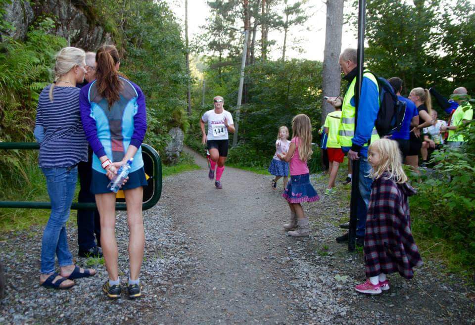 Jeg var ekstremt nervøs før start, visste ikke hva jeg skulle gjøre, kjente ingen deltakere egentlig, så jeg jogget litt på måfå rundt på området. Det virket som om det var det riktige å gjøre, hvis man skulle ta andres atferd i betraktning. Jeg tenkte at det var lurt å stille meg foran i feltet (STOR tabbe!), så når starten gikk raste jeg fremover sammen med de andre superløperne. Jeg fikk raskt forståelse for navnets opphav. 200 meter inn i løypa hadde jeg blodsmak i munnen, jeg kjente en fysisk rift i halsen (jeg var opphovnet i halsen i flere dager etterpå). 200 meter til var pulsen oppe i 183! Jeg skjønte at her måtte det roes ned. Det er da man raskt lærer hvorfor man skal starte ut moderat i et løp. Ikke veldig psykisk oppbyggende å oppleve at resten av gruppen bak deg passerer en etter en. Jeg løp med startnummer på meg, det ga på en måte en forpliktende følelse i fht å fullføre løpet. Jeg skal innrømme at tanken på å snike seg bort halvveis oppi bakken var stor og overhengende. Jeg vurderte alle mulige konsekvenser av akkurat det. Så for meg leteaksjoner, pinlige retretter, DNF (did not finish) på resultatlisten, osv. Jeg klarte å snakke meg selv til fornuft igjen. Målet var jo å fullføre mitt første løp, jeg skulle jo ikke vinne! Dessuten gjorde jeg det mye bedre enn noen gang tidligere i min løpekarriere på 5 måneder(!) Jeg hadde for eksempel aldri løpt de bakkene sammenhengende uten pauser før, bare det var jo en prestasjon i seg selv. Jeg kom i snakk med noen andre i løpet etter hvert og hang meg på dem, det fikk meg igjennom og i mål. Jeg var egentlig veldig fornøyd med mitt første løp i etterkant. Jeg kom på 10. Plass av 15 kvinner. OG jeg hadde fått veldig viktig erfaring i fht det å delta i løp.