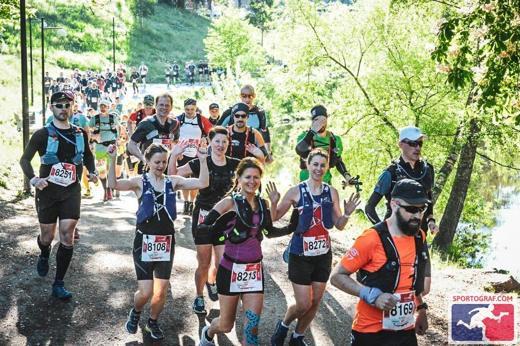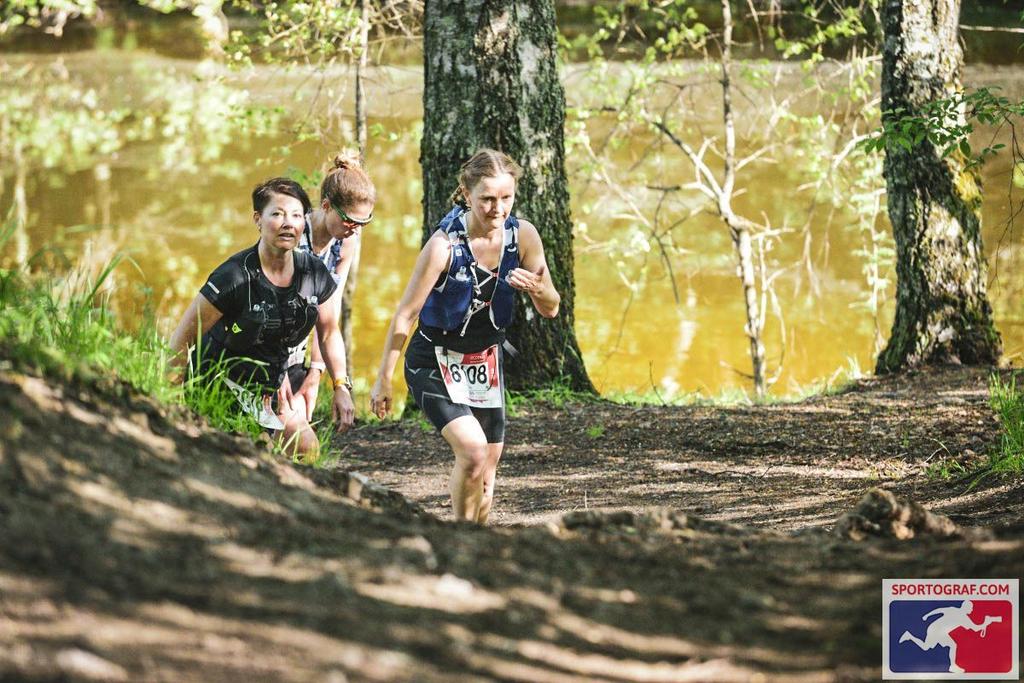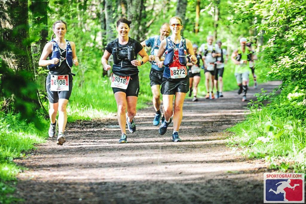 Sissel, Laura og jeg fulgte ultrastrategien vår. Rolig oppover. Det er jo en helt annen tankegang enn på alle andre løp, og selv om det noen ganger føles unaurlig å gå så vet vi hvilken distanse vi har forann oss,og da lønner det seg å ta noen lure valg. Ferden gikk først fra Elgsletta til Kjelsås og halveis rundt Maridalsvannet. I Maridalen fikk vi fylle på drikke før stigningen mot Fagervann startet. Der er det mye steiner og bratt, så der føles det ikke unaturlig å gå. Det første terrengpartiet er i gang, og for meg er terrengdelen den største utfordringen. Av oss tre er jeg åpenbart det «svakeste leddet» i terrenget, men trøster meg med at siden vi skal så langt så trenger det ikke gå så fort uansett. Jeg klarer meg bra oppover (siden vi kan gå .. haha ..) og greit bortover, men blir ganske så pinglete nedover. Likevel, det går fremover. Jeg har vært mer på løpetur i terrenget enn i fjor på denne tida, og på Ecotrail tok jeg meg i å tenke hvor moro det faktisk var, så jeg gleder meg til treningsturer i terreng fremover.