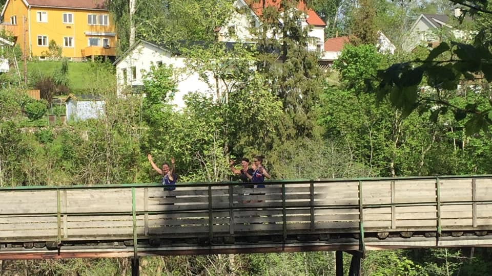 På Fossum har supporterskaren vokst enda mer. Her har også Maiken ankommmet og Lauras svigerfar. Vi er dypt takknemlige. Det er uten tvil et kjempeboozt at familie og venner heier på oss. Vi var relativt raske her også (til å være oss), før vi skulle starte ferden «nedover Lysakerelven» – som ikke bare går nedover. Her var jeg spent for jeg hadde hørt hvor glatt og sleipt det var der etter alt regnværet dagen før. Jeg løp på asfaltsko. Jada! Jeg har enda ikke funnet en terrengsko jeg klarer å løpe lange partier på asfalt med så da prioriterer jeg maksimalt med demping på en så lang tur, og pingla får heller bli enda litt mer pinglete hvis terrenget er glatt og sleipt. Det gikk likevel mye bedre enn forventet, og før vi visste ordet av det følte jeg at vi var nede på Lysaker med god hjelp av heiing av Maiken et sted på veien.