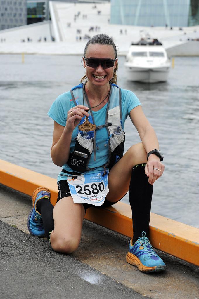 I år bestemte jeg meg for å prøve 21 km. Hadde ikke treningsgrunnlag til noe lengre. To uker tidligere skulle jeg løpe halvmaraton i Ålesund, men ødela ryggen under styrketrening i forkant. Derfor gikk jeg distansen. Det ble en nyttig erfaring og jeg fikk en langtur før Ecotrail.