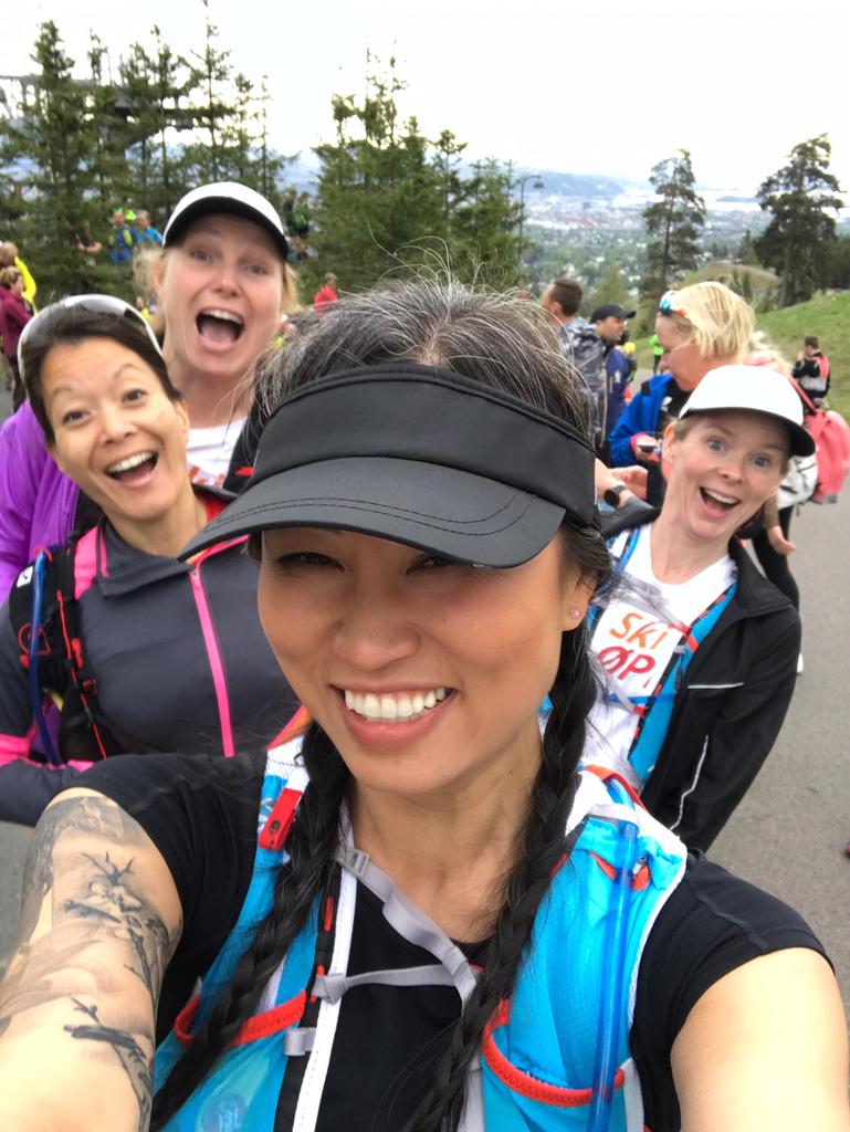 En av de beste opplevelsene var da jeg ankommet startområdet sammen med Jeanette, Ruby og Siri (SkiLøperne), og møtte flere av SkiLøperne. Jeg traff også mange Instagramvenner og Twittervenner. Det var så utrolig hyggelig å se alle i virkeligheten. Jeg elsker den fantastiske stemningen som er rundt ved startområdet. Jeg elsker alle de spente, blide, energirike og håpefulle ansiktene rundt meg. Jeg elsker den høye musikken og det voldsomme støyet i bakgrunn. Jeg blir helt gira og motivert og avhengig av sånt!