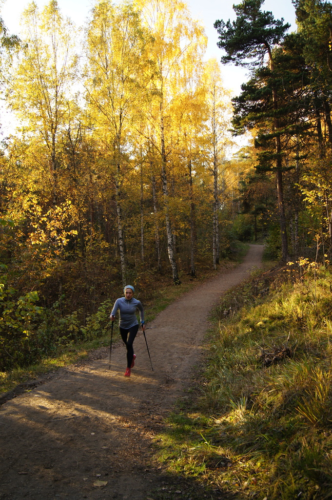 Nå som jeg selv har vært i oppstarten med treningen igjen, hadde jeg nylig en fin tur med staver. Jeg hadde lyst på en hardere økt men siden jeg ennå ikke hadde hatt en skikkelig intervalløkt etter jeg begynte på med løpingen etter hvilemåneden så tenkte jeg at dette var en fin måte å få kjørt hele kroppen. Denne gangen ble det en løpetur i skogen hvor jeg brukte stavene på drag i oppoverbakkene, slik at det nærmest ble en fartlek økt.