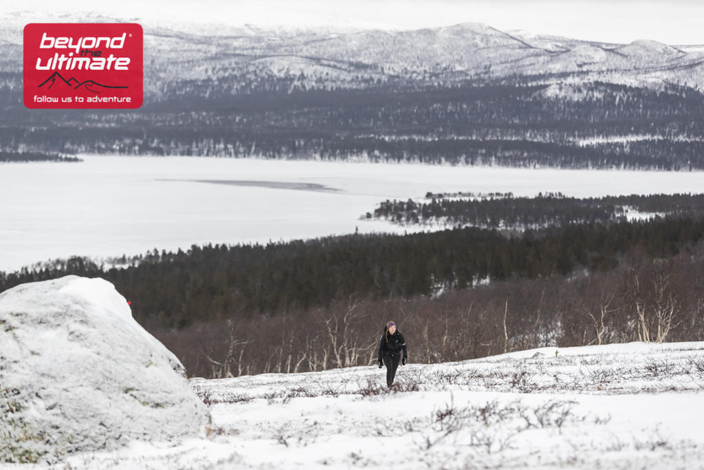 Da vi satte av sted var det først en 10 kilometer lang strekning på isete vei, jeg holdt følge med Jax og vi lå som nummer 3 og 4 helt til første sjekkpunkt. Jax hadde allerede begynt å bli kald og ble nødt til å stoppe opp for å kle på seg mer på første sjekkpunkt, jeg trengte bare å fylle på litt vann og dytte i meg litt mat før jeg la av sted videre ut på den første innsjøen før jeg begynte å klatre oppover mot den vær og vindutsatte tundraen. Jeg ble nødt til å ta på meg trugene og de neste kilometerne ble det uendelig mange stopp for å ta av og på truger. Kraftig vind tidligere i uken hadde gjort at mye av snøen var blåst bort fra fjellet, likevel var det strekninger hvor man sank ned med snø til knærne om man ikke hadde truger på. Jeg lå nå som nummer tre og lurte på hvor Jax var blitt av, mannen bak meg, Wim, holdt følge med meg i perioder og vi ga hverandre tips og oppmuntring. Da jeg nærmet meg sjekkpunkt 2 kjørte en snøscooter forbi meg og jeg oppdaget at det var Jax som satt bakpå og forstod at hun dessverre hadde brutt.