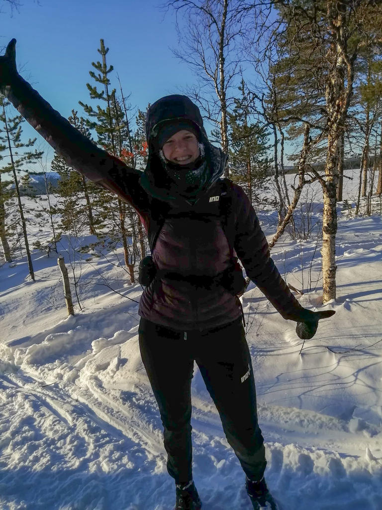 Jeg så flere elgespor ute på innsjøene. De så ferske ut og jeg speidet rundt meg for å se etter dyr. Men jeg så ingen. Jeg hadde ikke sett Wim eller noen andre mennesker på en stund og følte at jeg var helt alene i denne vakre villmarken, men plutselig hørte jeg lyden av mennesker; «HeiaHeia!» ropte en mann mens han smilte og vinket og jeg oppdaget til min forbløffelse at jeg hadde løpt inn i et boligfelt. Det stod en og annen utenfor husene og måkte snø og alle jeg passerte heiet og vinket. På et løp som dette kan du ikke forvente å møte på de store hordene med tilskuere som heier, men det gjør også at de få du møter på veien er verdt utrolig mye. Det varmet skikkelig og jeg kjente at beina satte opp farten litt. Jeg forventet også å se neste sjekkpunkt hvert øyeblikk. Jeg gledet meg til å få i meg litt varm kakao, kjeks og nøtter.