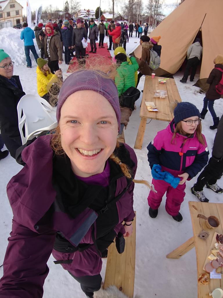 Denne etappen var litt spesiell, for nå var det åpent for at også lokale løpere kunne være med på den siste strekningen inn mot Jokkmokk. Vi var derfor mange flere som stod på startstreken denne morgenen. Det hadde også samlet seg en liten gjeng med supportere, lokale folk som hadde tatt turen for å heie oss av sted.