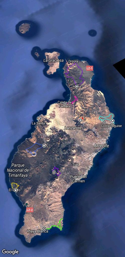 Vi bodde i Teguise, et bra utgangspunkt for alle turer. Lanzarote er en såpass liten øy at det egentlig ikke spiller noe rolle hvor du bor, så lenge du har en bil. «Fordelen» med å bo i denne lokale byen var at vi hver morgen ble vekket av et kaklende orkester av haner som startet å gale rett etter kl.05.00. Våknet du ikke av det (intensiteten var avhengig av vindretningen) begynte duene på taket i tillegg med sitt ritual kl.07 hver bidige morgen, som om ikke det var nok, så satt de lokale hundene i gang sitt bjeffekor kl.07.30. Altså så måtte vi bare komme oss opp og ut. Siden det blåste konstant på øyen i varierende styrke, så var det ikke mulighet for å sole seg i Teguise, vinden kom fra alle kanter rundt huset. Vi måtte til kysten på en god dag for å ligge å sole oss. Det ble derfor naturlig å utforske Lanzarotes forskjellige landskap, og hvilken måte er vel bedre enn å gjøre det løpende? Fordelen med å løpe turene er at man rekker over mye større områder enn om man skulle gått.