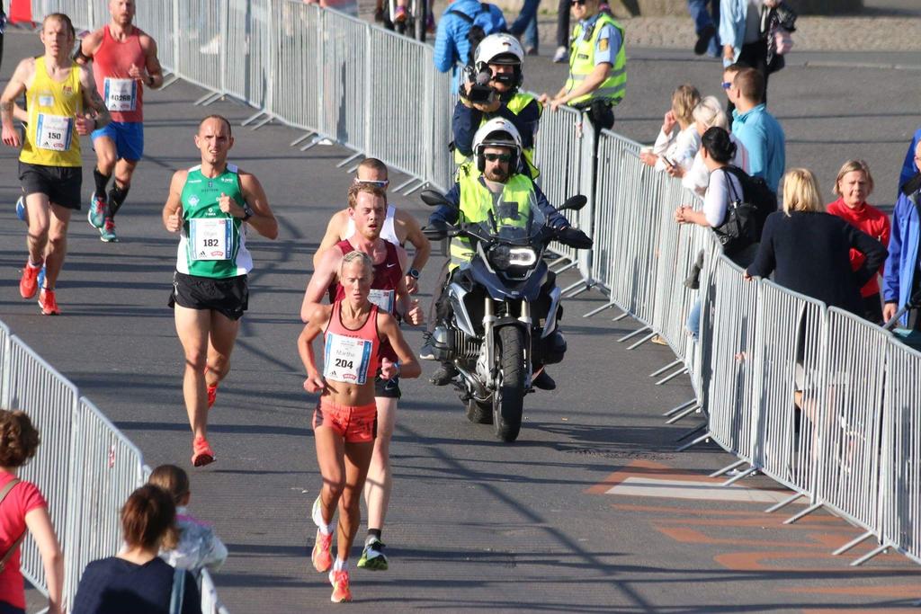 Løypa i Oslo setter deg som sagt virkelig på prøve. Det er få partier det er lett å løpe på flyt. Ut fra start stiger det lett og det er kupert fram til 4 kilometer. Utover mot Sjursøya løp vi på sugende grus. De fleste som har løpt i Oslo kjenner til stigningene fra Opera-bygget mot Tøyen og rundt Botanisk hage. Skikkelig artig var det at NRK Sporten gjorde intervju på begge rundene. Gjermund Midtbø gjorde en herlig innsats.