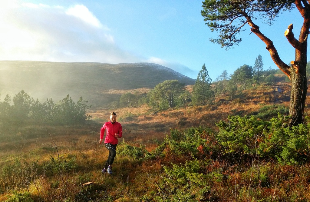 Høsten er vakker å løpe i, mange flotte farger. Her opplevde vi melisdryss på fjelltoppene, tåke og sol om hverandre, virkelig nydelig!