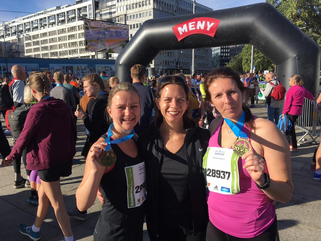 Kristin og jeg kom nesten samtidig til mål. Er så glad jeg møtte henne underveis så vi kunne være litt fornuftig sammen. Hun er helt rå. Hun har passert 50, og løper maraton, halvmaraton og mange andre løp. Jeg vet det er mange spreke i den aldersklassen og eldre. Det gjør meg så glad og supermotivert.
