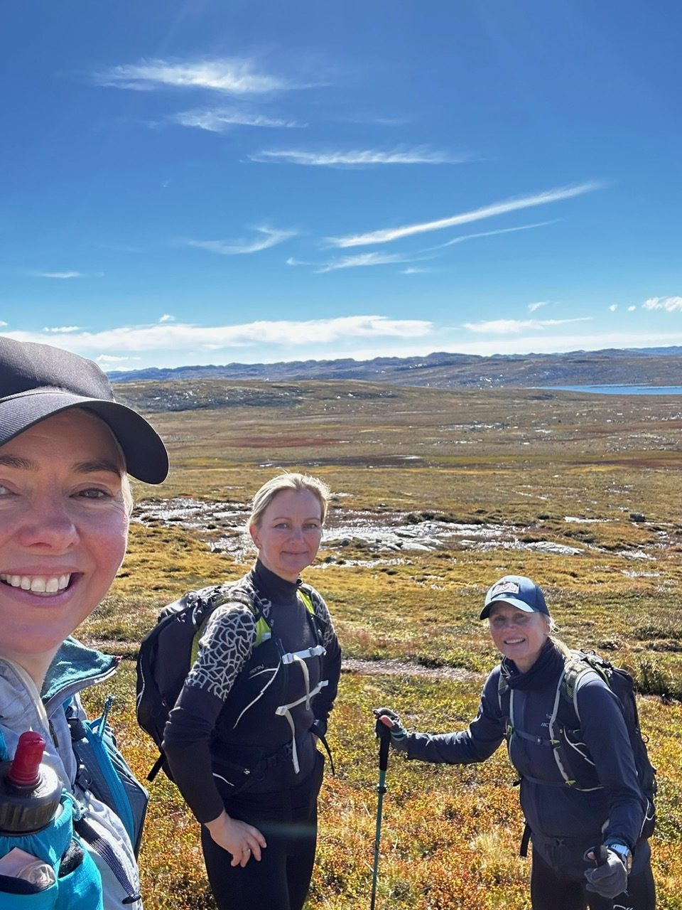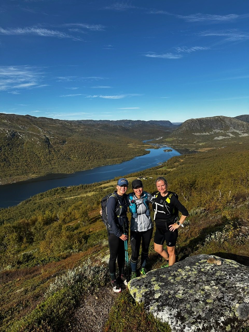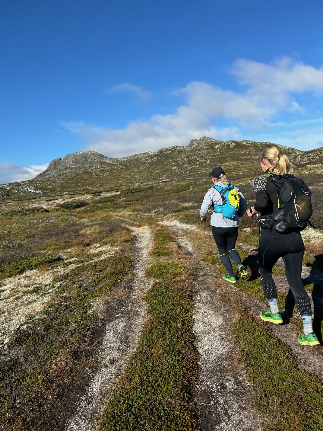 Jeg var så optimistisk at jeg sendte jentene en melding dagen før for å spørre om mine VJ Ultra sko var «for tekniske» til de fine stiene jeg ventet meg? Hanne svarte så fint; det er ikke helt steinfritt på denne turen heller så ta de, du (Hun hadde gått denne turen i sommer med mannen sin).