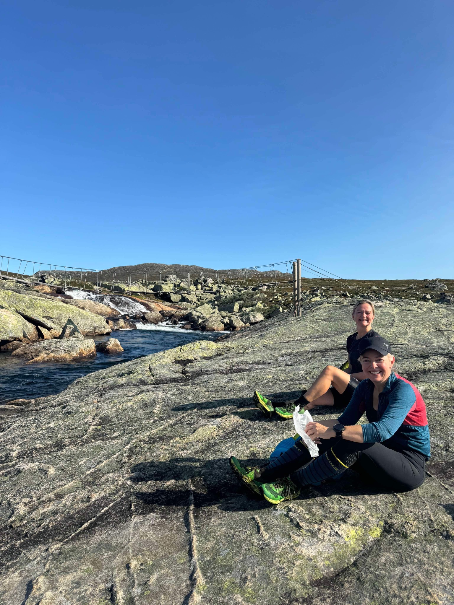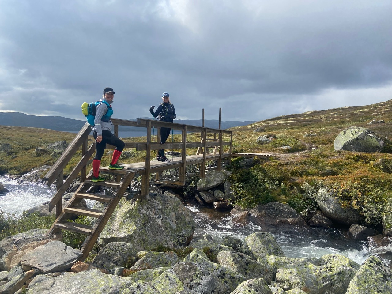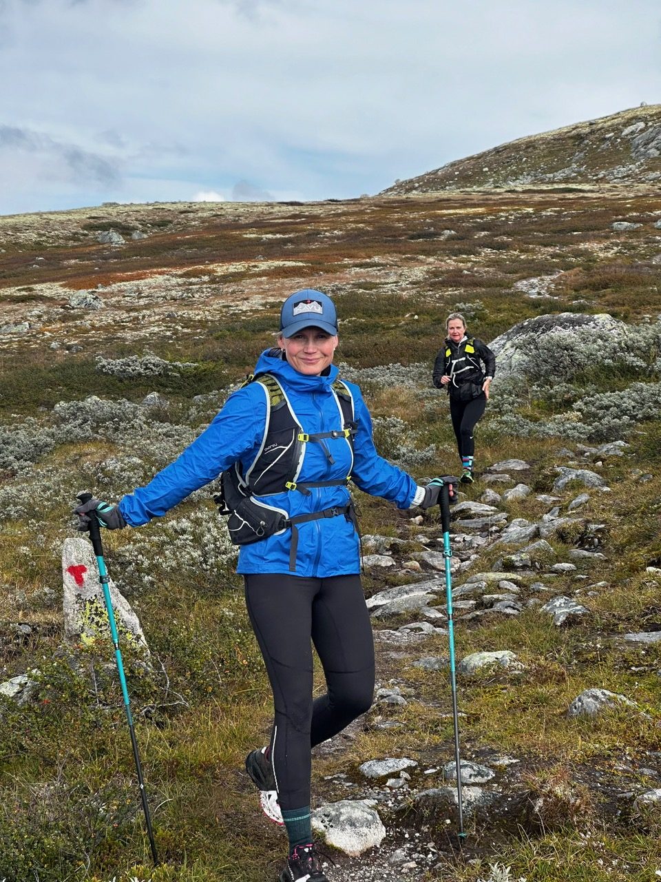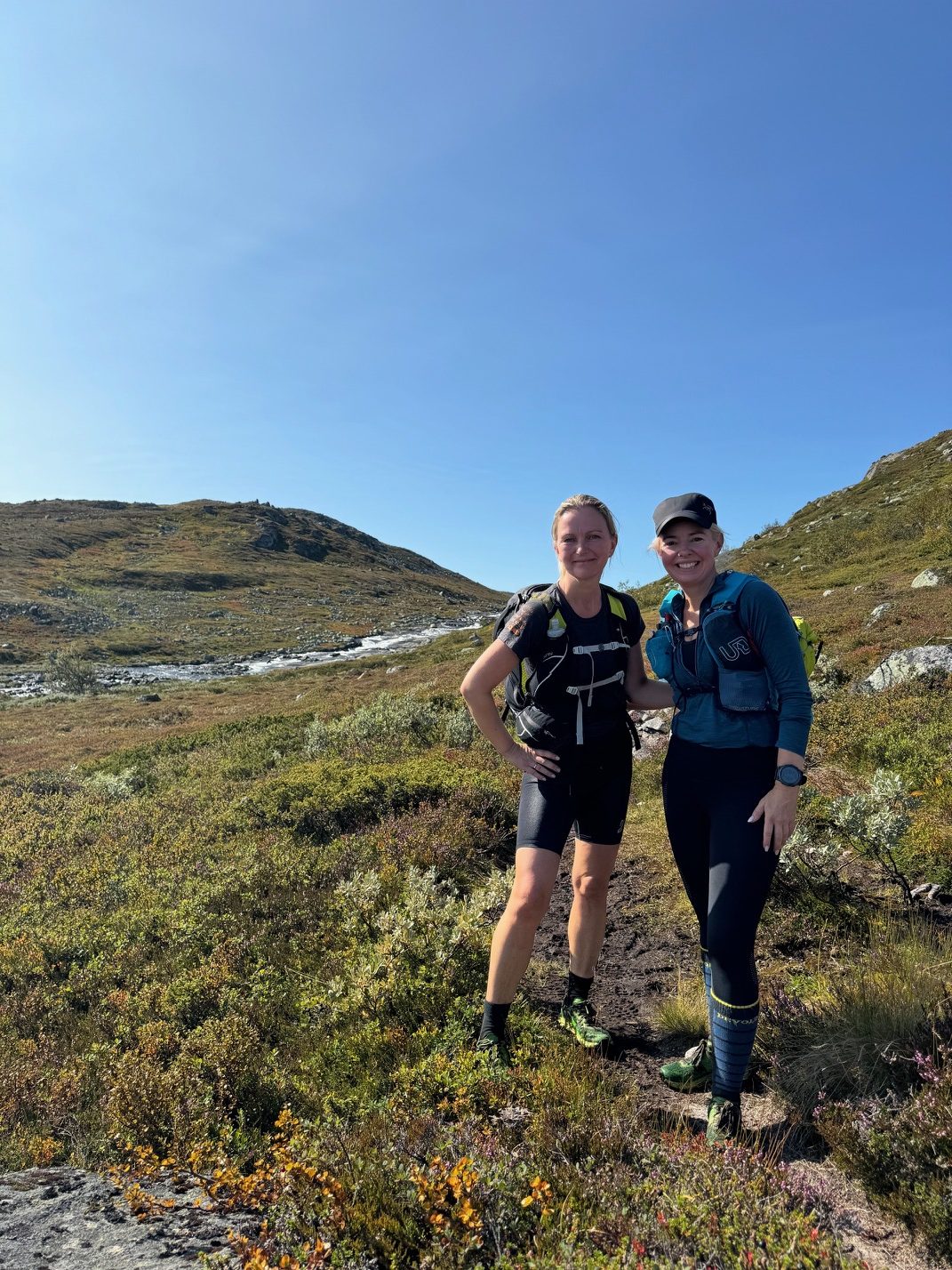 Jeg var så optimistisk at jeg sendte jentene en melding dagen før for å spørre om mine VJ Ultra sko var «for tekniske» til de fine stiene jeg ventet meg? Hanne svarte så fint; det er ikke helt steinfritt på denne turen heller så ta de, du (Hun hadde gått denne turen i sommer med mannen sin).