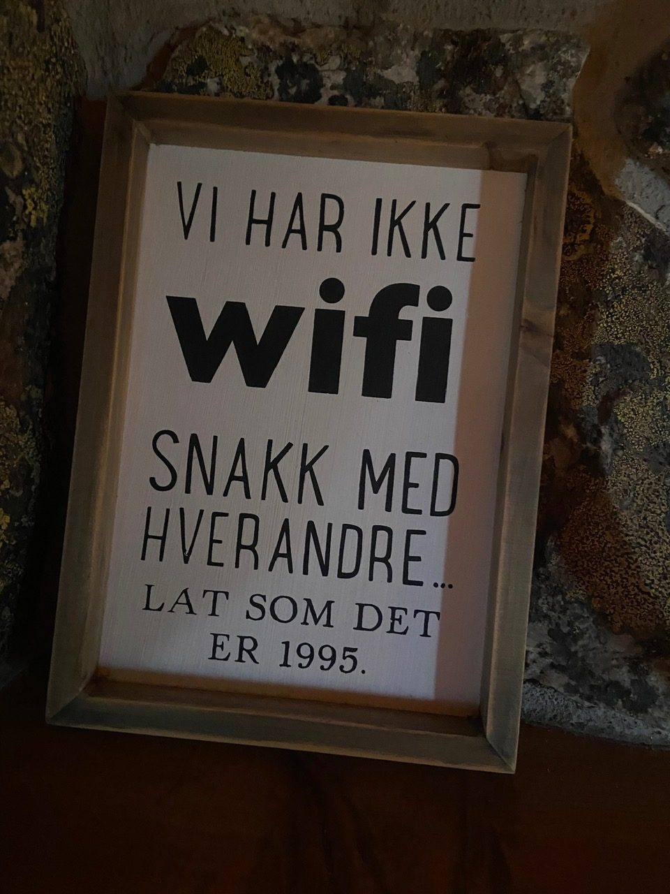 For en varm stemning det var bare å komme inn døren. Vi fikk sjekket inn, og satt en flaske rødvin til lufting mens vi fant rommet og tok en dusj. Silje og jeg delte rom. Jeg tok overkøya siden jeg har litt mindre høydeskrekk enn Silje. Høydeskrekk er noe vi etterhvert ikke kom på at vi hadde (Wait for it!). Kvikk-lunsj på puta. Så stas! Inn i spisesalen for servering av tre retters middag. Vi spiste sammen med de to andre damene. Gutta satt i badestamp utenfor.