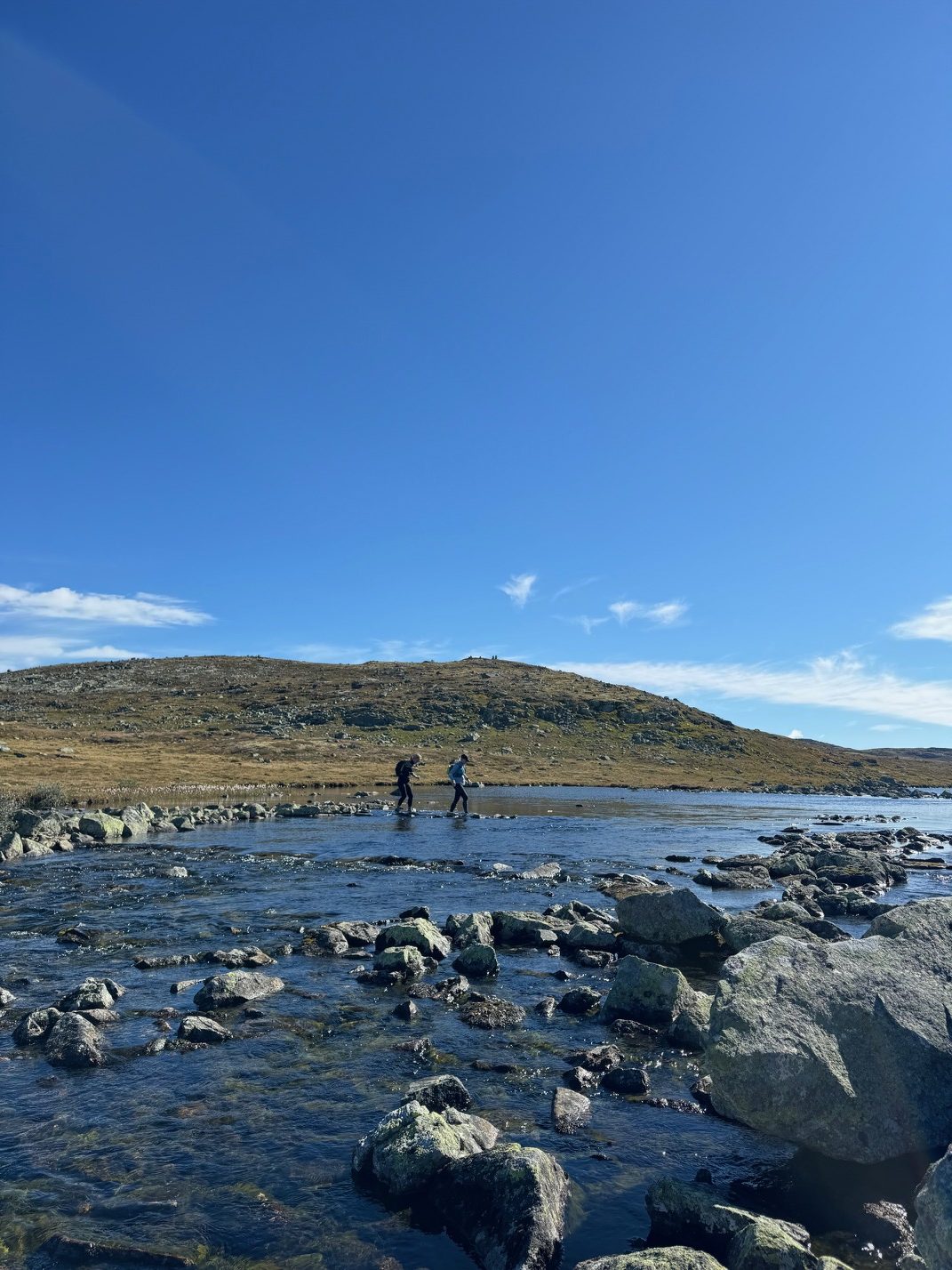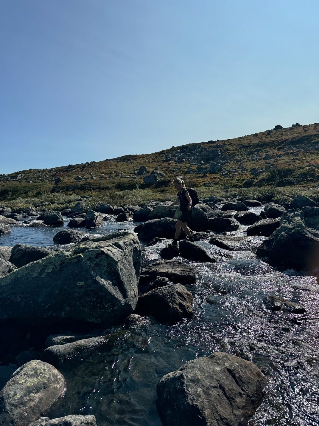 Strekningen Kalhovd – Mårbu har mange fine flytstier. Det gikk unna innover, og det er så nydelig der. Akkurat den distansen var en del av siste etappe i motsatt retning det aller første året på Hardangervidda i 2019. Det var kanskje siden det gikk unna at jeg måtte nedom å hilse på bakken. Plutselig lå jeg langflat på stien. Opp igjen.