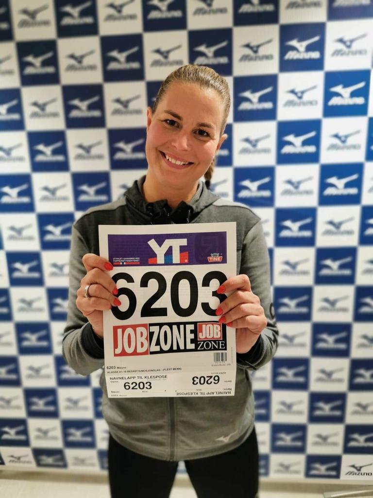 PHU, tid for å slappe av litt. Er det egentlig litt varmt? Burde jeg ta av jakken? Fikser startnummeret på t-skjorten og ser plutselig Lars komme i noe som ser ut for å være i supermann fart! Wooohooo! Jeg får stafettpinnen og legger selv på sprang. YES, disse 1900 meteren er ren bonus, jeg trodde jo jeg ikke skulle løpe, og her er jeg, i Oslos gater med på stafetten, Lykke! Når mitt forrige løp for 13 dager tidligere var 42195m, var det skikkelig rart å skulle løpe 1900m nå. Mye vondere til pusten (og jeg angret litt på mølleøkten noen timer før), jeg var spent på om jeg kom til å se hun jeg skulle veksle med, ser plutselig vekslingsfeltet og der, godt synlig STÅR lagvenninna mi. Jeg gliser og får ropt «Goood tuuur» avleverer stafettpinnen. Vips, HK-stafetten er over for min del.
