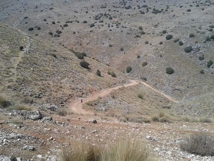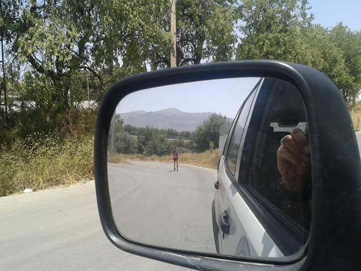 Jeg hadde aldri vært ute i slik varme før. Dette fjellet hadde enda mindre skygge å by på enn fjellet dagen før, kun olivenlunder. Jeg oppdaget raskt at jeg hadde spist for stor frokost før vi startet. Jeg har en innebygget angst om at jeg ikke skal ha nok energi å løpe på, så jeg prøvde å få i meg mest mulig, ingen god beslutning. Oppi bakkene begynte jeg å bli kvalm og svimmel, direkte uvel. Følte sterkt for å donere noe av maten tilbake til moder jord, men klarte å holde det nede. Har lest om at dette kunne skje, så det skremte meg ikke. Tok det som en nyttig erfaring. Det er rart å innse at man kan løpe oppover i slik intens varme, uten å kollapse, selv om i hode var jeg på randen til akkurat det. Jeg begynte å se for meg (tilnærmet hallusinere) at jeg la meg under et oliventre i fosterstilling, helt musestille og ble servert ubegrensete mengder isvann, frem til kvelden og mørket senket seg…. Servert av en kelner ikledd kjole og hvitt, av alle ting. Hvor i alle dager kom den ideen fra? Men det var dessverre ikke noe reelt alternativ, måtte bare fortsette.