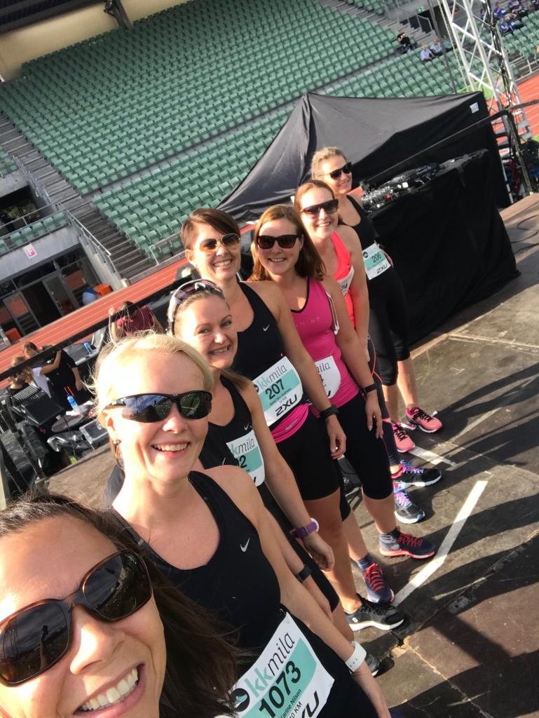 Det er ikke vanskelig å se at KK mila er et STORT dameløp. Bislett stadion er rosa denne dagen. Til og med Hibas doene er rosa. Det er mulighet for shopping, hårpynting, massasje, konkurranser og det er morsom underholdning fra scenen. Akkurat i går skulle jeg og de andre #høgepålivet jentene på scenen, og hvorfor det? Jo, KK avholdt på Facebook en konkurranse om årets lagnavn. De hadde plukket ut 10 navn på forhånd, og vi var ikke et av dem. Det var likevel mulig å legge navn til konkurransen, og det ble gjort av veldig mange, blant annet oss. Jammen stakk vi ikke av med en liten seier når det gjaldt antall stemmer, men det var selvsagt det nominerte laget med flest antall stemmer som stakk av med den STORE seieren, og de hadde det kule navnet: «Not so fast but furious» Fantastisk! Gratulerer 😊 Vi fikk gode klemmer, heder og ære fra Sigrid Bonde Tusvik og Ingeborg Heldal fra KK. Veldig moro! Vi synes det er ekstra moro å vite at flere liker navnet vårt som beskriver helt perfekt hva løping gjør med oss. Vi blir #HØGEPÅLIVET!