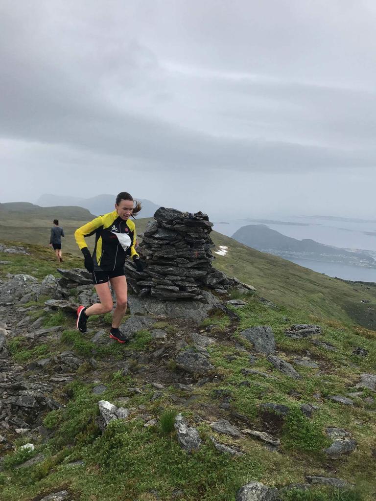 Etter Vonhytta gikk det over i sti og fritt terreng, været skiftet, det begynte å regne og blåse tiltagende jo høyere vi kom. Jeg kjent at nå var det dags å prøve å koble seg på denne nullpunktsenergien, som jeg hadde lest om dagen før. Det ble med den ene tanken. Hvis du ikke har erfart det selv enda så kan jeg fortelle deg at den mentale kapasiteten reduseres proporsjonalt med hvor sliten du er og hvor mye du tar deg ut fysisk. Du kan bare glemme kvantefysikk. Jeg hadde mer enn nok med å klare å få på meg jakken i «fart» (det begynte å bli kjølig og vått), og få knotet startnummeret først av meg fra devoldtoppen og så på meg igjen utenpå jakken, og så puste samtidig. Den siste ganske så bratte bakke før man når toppen ble forsert mens de som allerede var kommet i mål, var på vei ned igjen. Det var ikke party-vær på toppen, for å si det sånn. Da jeg kom opp ble jeg møtt av en rasende vind som nesten slo meg over ende. Da gjensto det noen par hundre meter frem til den egentlige Varden og mål. Det var bare å lene seg mot sidevinden holde stø kurs mot mål, ikke snuble i det tekniske terrenget og late som man ikke merket pissevinkelregnet som som pisket inn i øret på deg.