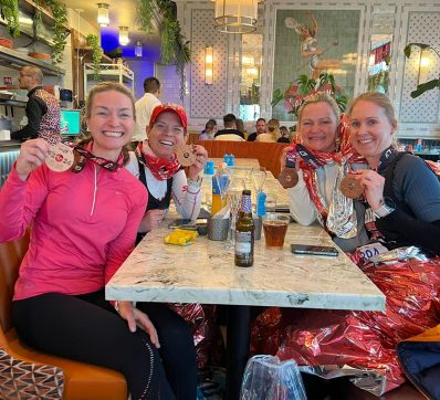 Vi fikk feiret både løpet og Siri sin bursdag på afterrun på kvelden med god middag og litt bobler i glasset. Vi hadde alle pyntet oss med det fineste smykket vi kan være, nemlig medaljen vår.