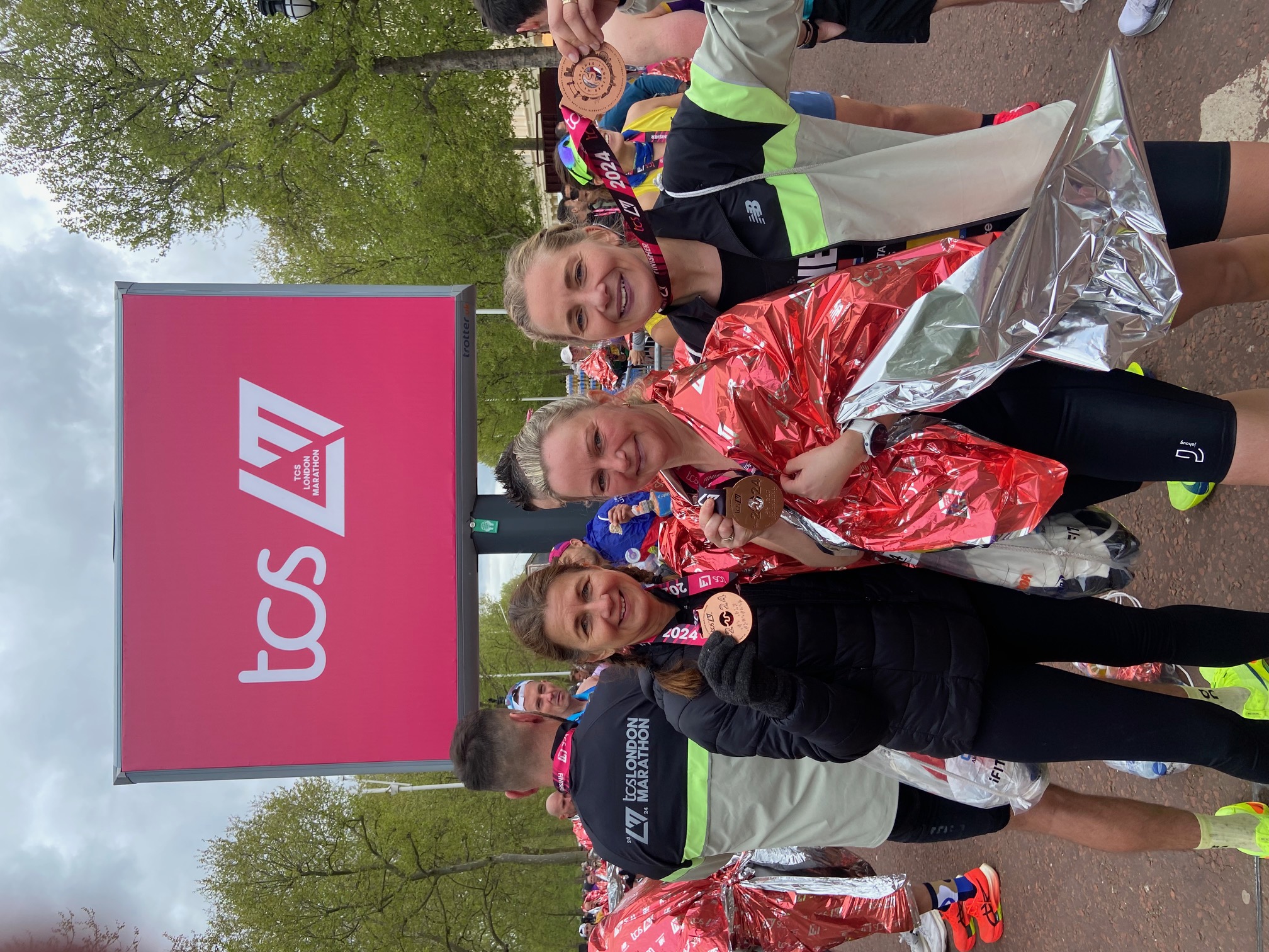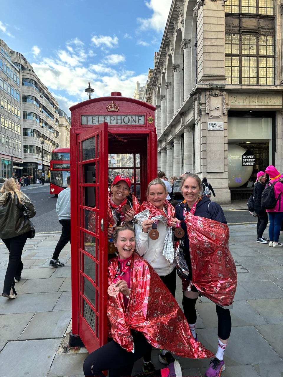 Plutselig ser jeg London Eye og etter hvert Big Ben. Jeg nærmer meg slutten av dette magiske maratonløpet. Jeg passerte 40 km på 03.13 timer. Akkurat som i Berlin i 2022. Jeg hadde ca 9 minutter på meg på de siste 2,2 km for å faktisk sette pers. Jeg bestemte meg for ikke å se mer på klokka, men bare løpe det bena kunne bære meg. Jeg passerte Buckingham Palace, og begynte etter hvert å skimte mållinjen. Synes plutselig den var uendelig langt fremme. Publikum var magiske, men føttene kjentes limt ut mot bakken helt på slutten. Jeg var fast bestemt på å smile hele oppløpet og inn i mål, og det klarte jeg. Jeg passerte mållinjen, og ser ned på klokka. Den viste 03.24 et eller annet. Haha, persen fra Berlin var 03.24.00 så her skjønte jeg at jeg var like bak. Jeg tar frem telefonen og har fått det offisielle resultatet, 03.24.04 😊 4 sekunder bak! Det kan være en kamel å svelge for noen, og mulig jeg svelgte en liiiiiten kamel for de 4 sekundene, men jeg var stjernefornøyd. Jeg hadde jo ikke trodd dette. Jeg håpet jo først og fremst at jeg skulle klare under 03.30, også ender jeg opp med å gjøre mitt nest beste løp. Jeg var så glad! Jeg fikk medaljen. Den er så fin! Vakker. Den ligger akkurat nå vedsiden av meg på pulten min (som også er jobben min) men den skal snart få komme opp sammen med alle andre maratonmedaljer i treningsrommet vårt.