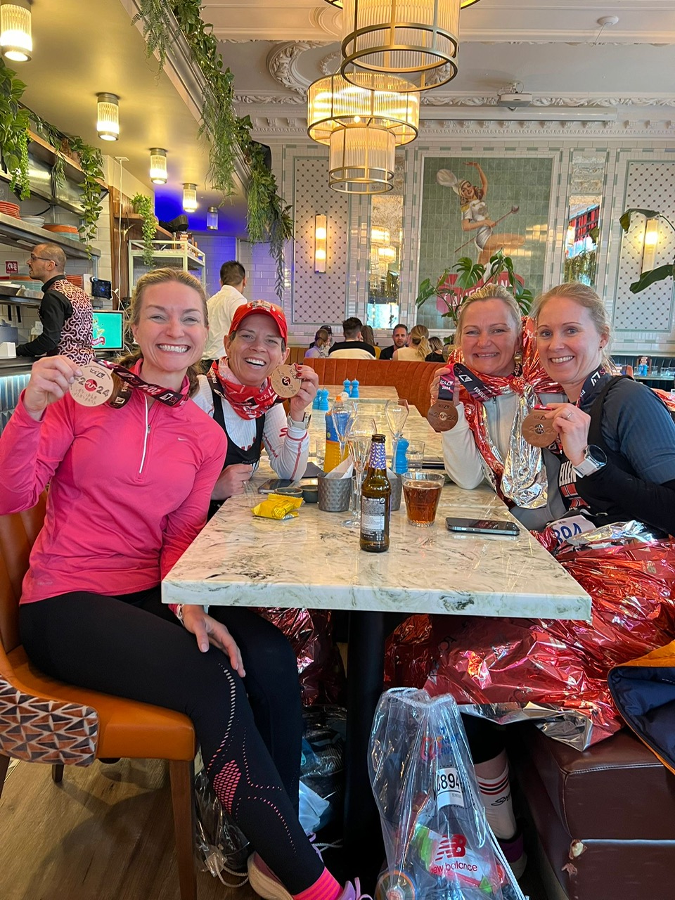 Vi fikk feiret både løpet og Siri sin bursdag på afterrun på kvelden med god middag og litt bobler i glasset. Vi hadde alle pyntet oss med det fineste smykket vi kan være, nemlig medaljen vår.