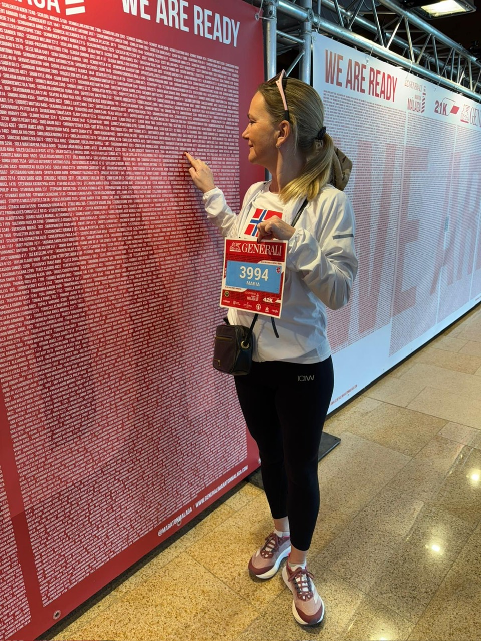 Det var nesten 16000 deltagere i desember, fordelt på maraton og halvmaraton. Det var ny deltagerrekord for dem. Vi fikk startnummer, singlet/t-skjorte og vi fant navnet vårt på veggen. Vi tok en rask titt ellers og fikk tatt litt bilder.