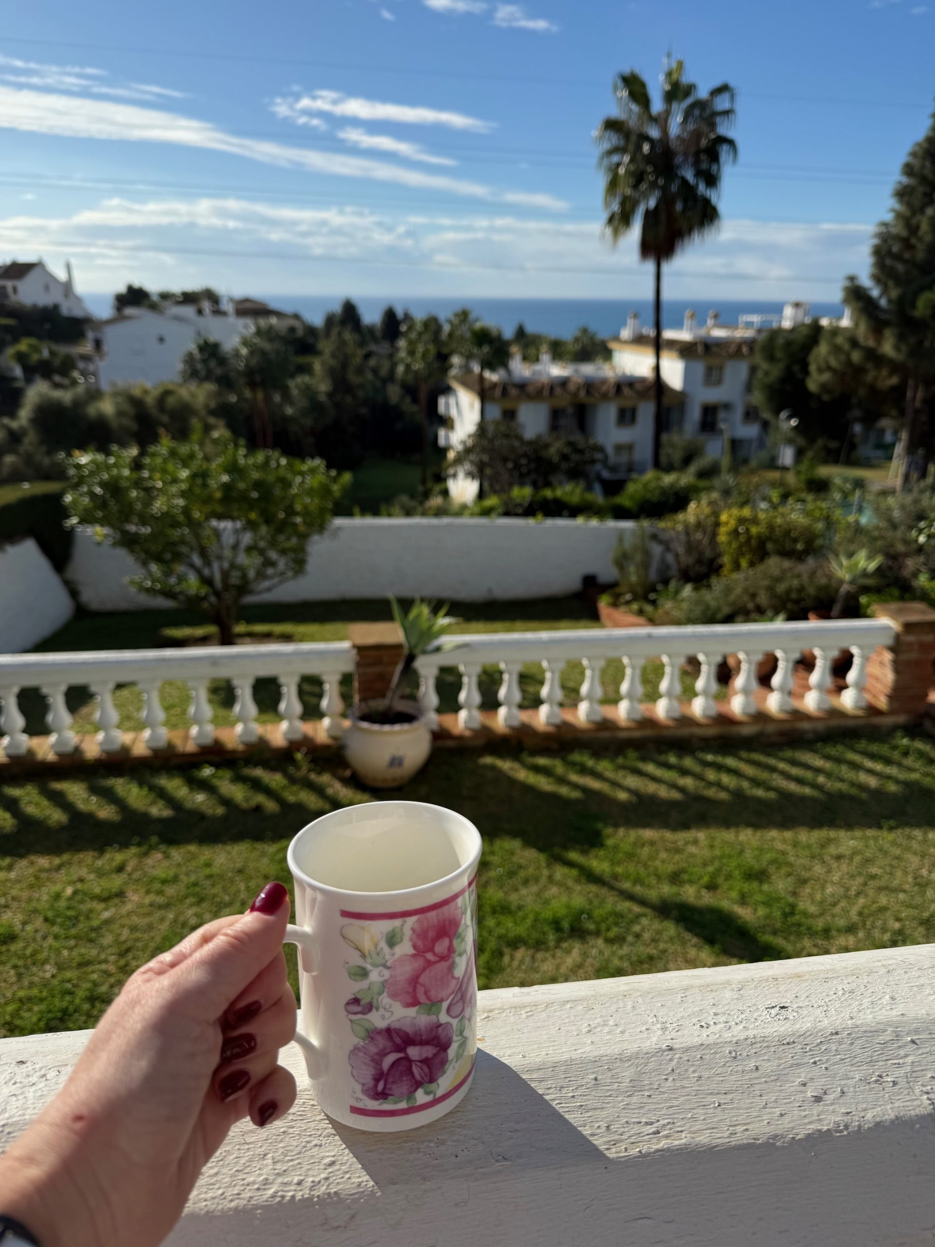 Torsdag 12. desember møttes Nina, Marita og jeg på toget til Gardermoen. Vi fløy til Malaga hvor Kristin tok imot oss. Hun og mannen har hus i Calahonda, og vi var så superheldig at vi skulle bo der. Så deilig med et lite avbrekk fra surt og stusselig desembervær i Oslo til våraktig vær i Spania. Selv jeg som gledet meg helt enormt til jul synes det. Spanjolene lager også julestemning. Det var fantastisk belysning overalt.