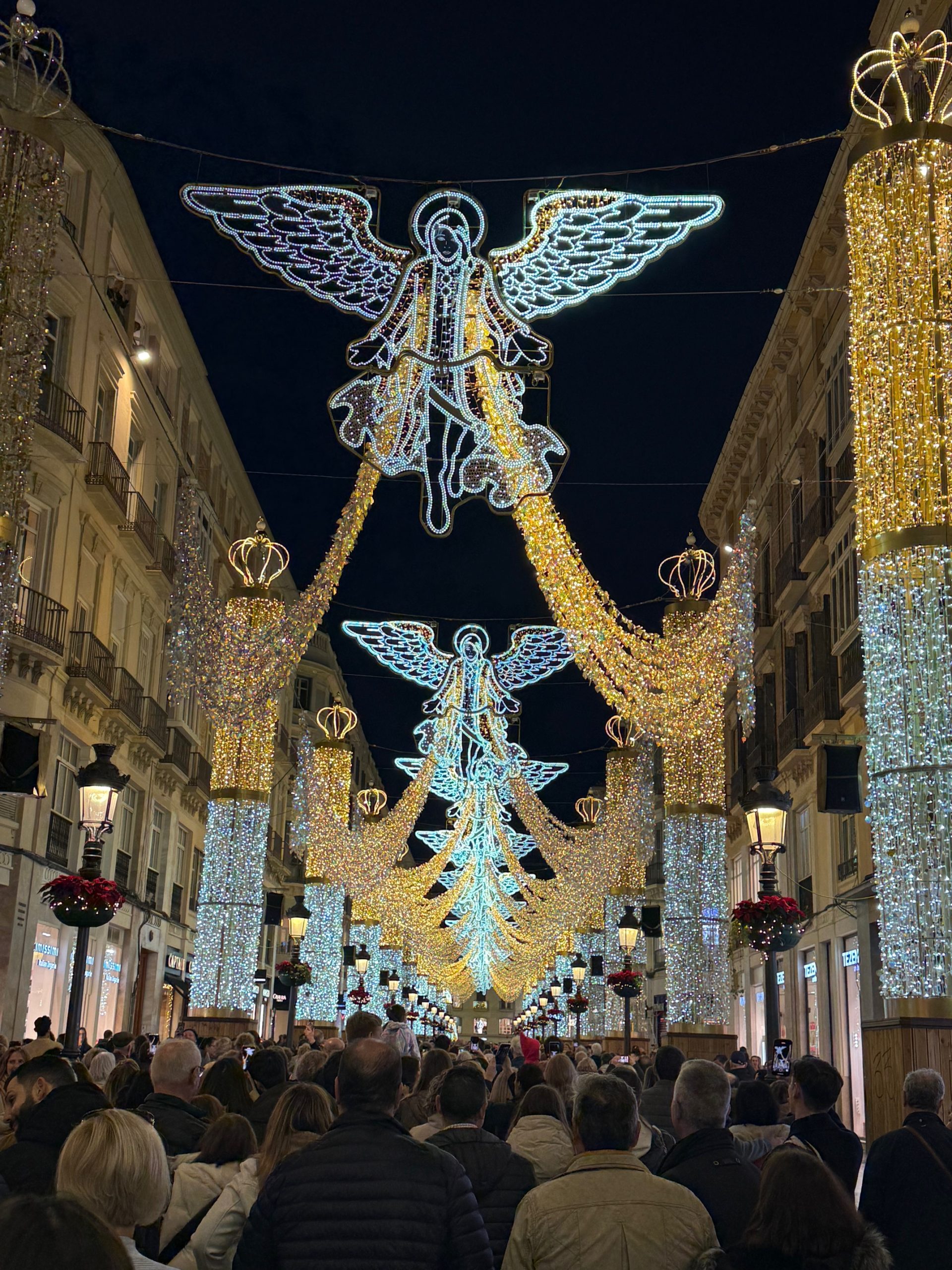 Vi tilbragte fredagen i Malaga by. 18.30 skulle det være lysshow i gågata, og det var en formidabel julebelysning der. Det ble en opplevelse. Så stemningsfullt. Vi sang og danset i gata sammen med mange andre. Gåsehud.