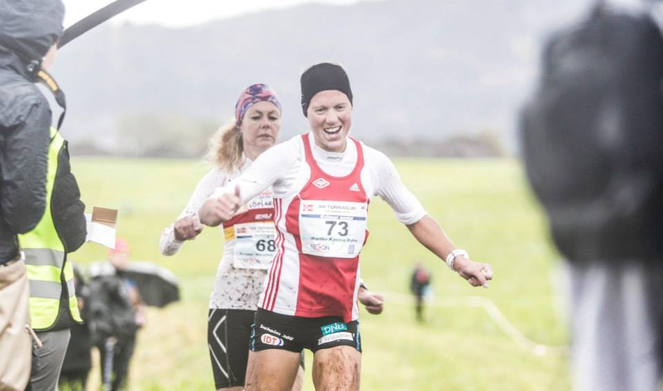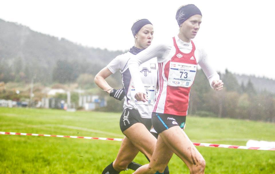 Starten på siste runde hadde jeg og Kirsten M. Melkevik en god luke ned til de andre. Jeg skjønte at det ville stå mellom oss. Farten var forsatt velig OK for min del og jeg tenkte at jeg ville prøve å skape meg ei luke i de mest gjørmete partiene ca. 800 meter før mål. Jeg vet jo at jeg ikke er veldig rask og var usikker på fartsresursene til Kirsten. Luka fikk jeg billig, men strekket var langt og det kostet krefter i motvinden. Heldigvis holdt langspurten min akkurat inn til mål og jeg kunne juble – bokstavelig talt – over mitt sjette NM-gull i løp.