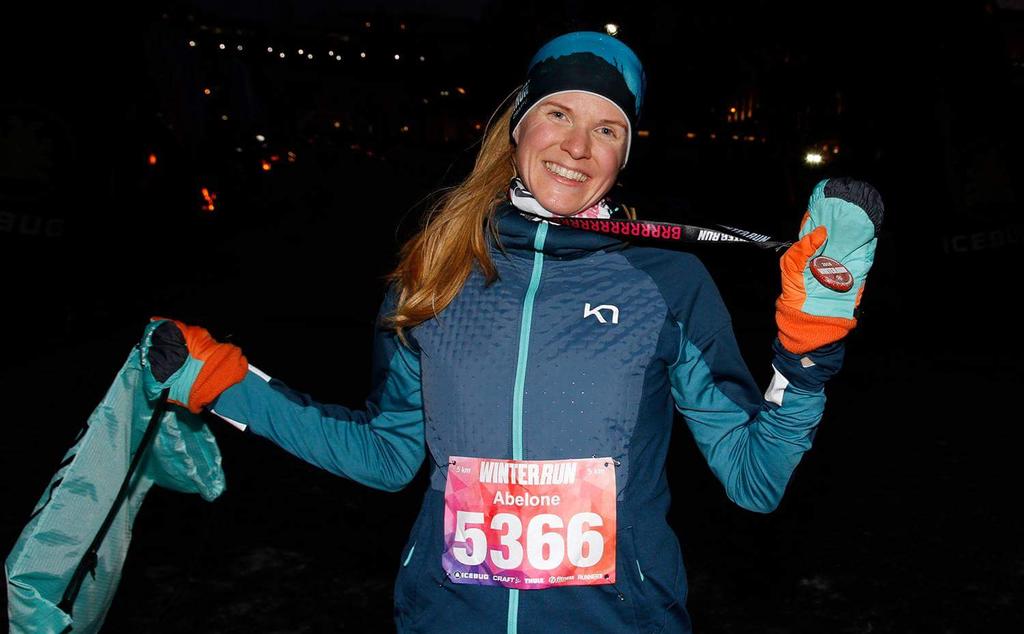 Og da jeg kom i mål var jeg fullstendig utslitt. Jeg var helt stiv i ansiktet av kulda og innsatsen. Det å prate var vanskelig, hodet var helt tomt og beina var som gele. Jeg knipset den obligatoriske «etter løp selfien» før jeg kledde på meg polfarer outfitet igjen. Og først da fikk jeg beskjed over høyttaleren at jeg var kommet inn som nummer 3.