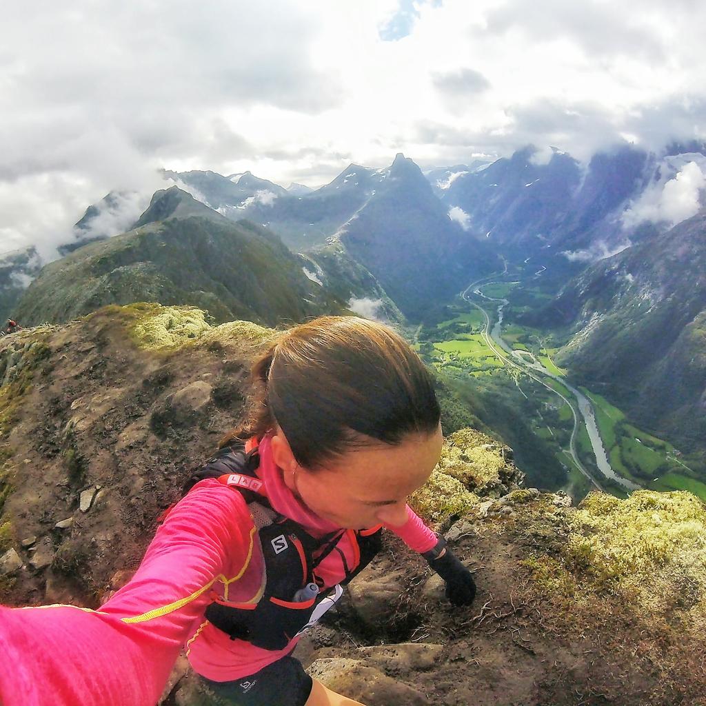 Romsdalseggen er en populær og fantastisk tur å få med seg. Denne sesongen har angivelig over 15.000 personer fullført turen. Jeg hadde ikke gått den, så var derfor spent på hvor luftig og bratt det egentlig var der. Jeg har fortsatt noe høydeskrekk, så fryktet at den kunne stoppe meg i et løp som dette.