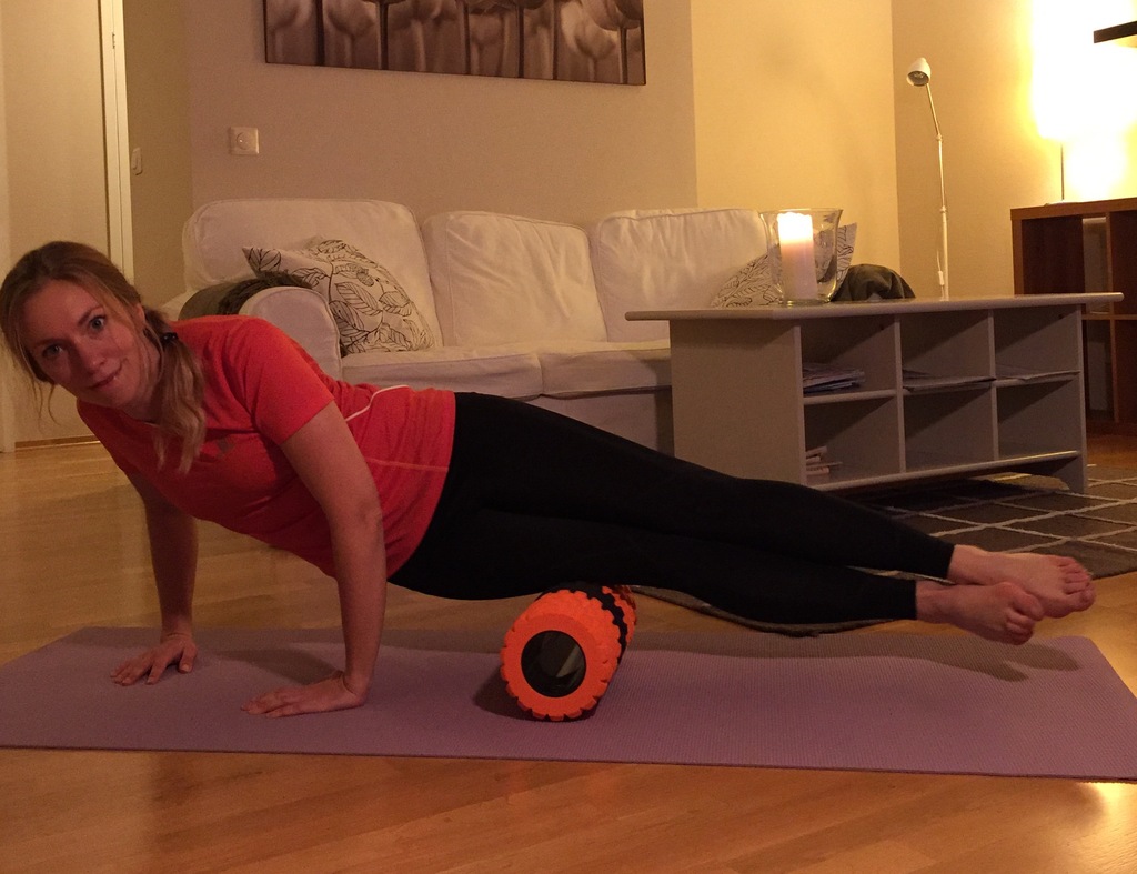 De tøyeøvelsene jeg føler er viktigst for meg er å tøye hofteleddsbøyeren og setemuskelen. Jeg skulle gjerne fått tøyd fremsiden av låret mer men etter korsbåndsoperasjonen min i mars 2014 har jeg ikke full bøy i kneet og dette er derfor litt vanskelig å få til. Men her føler jeg at rullen hjelper godt på. Bruk av en skumrulle på framside, bakside og utside lår hjelper godt å få løsnet opp i stram muskulatur og knuter. Jeg opplever at jeg må rulle noen ganger fram og tilbake før jeg virkelig kjenner at det tar. Om du ikke er vant med bruk av rulle kan jeg love deg at du kommer til å kjenne det.