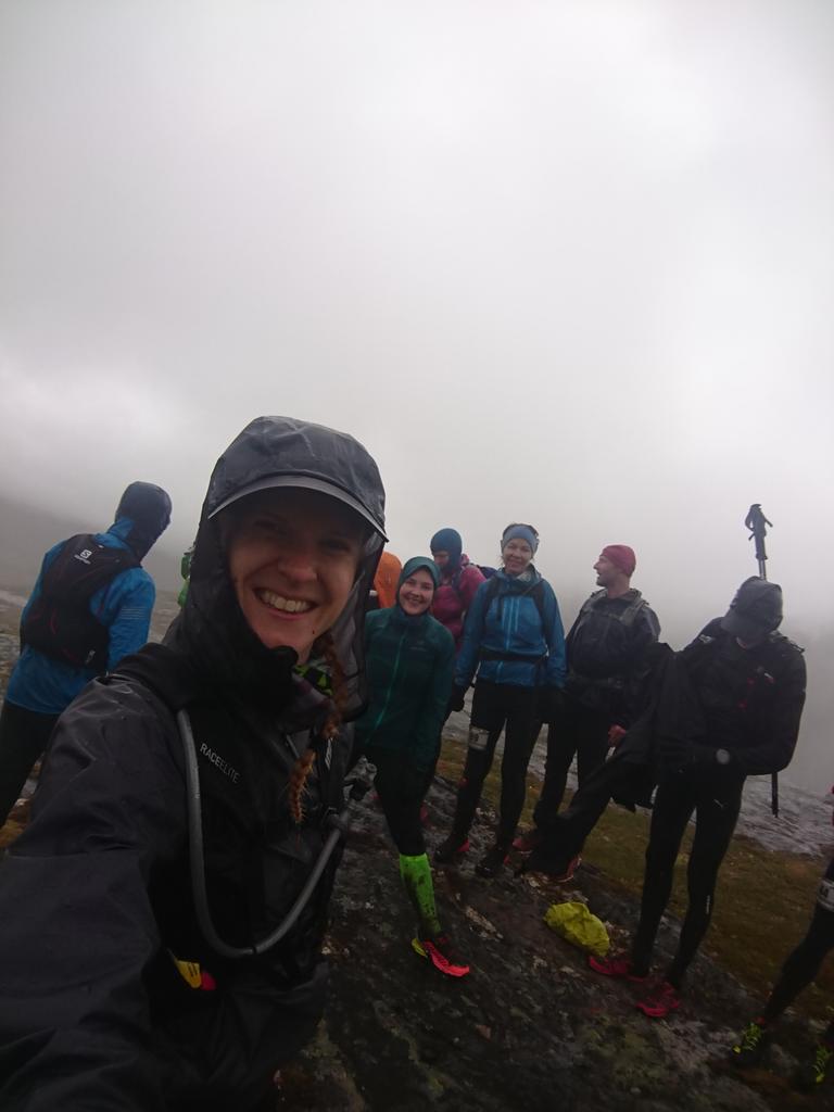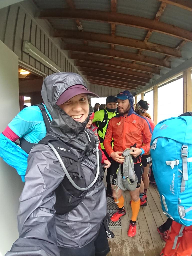 Heldigvis ble jeg reddet av Matt i Inov8 som hadde et par ullsokker liggende i bilen og noen gode tips til hvordan jeg skulle komme meg igjennom løpet som jeg nå begynte å forstå kom til å bli alt annet enn en hyggelig løpetur i fjellet. For nå ble det annonsert at det snødde og blåste liten kuling på Grytetippen.