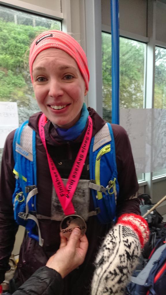 Det var en kald og våt Sara jeg løp ned for å møte. Hun vekslet mellom å gråte og le og rundt halsen hennes var det en medalje som viste at hun hadde gjennomført (nesten) hele Sanssenja. Arrangøren avbrøt løpet, det var rett og slett blitt for glatt og farlig ned den siste bakken.
