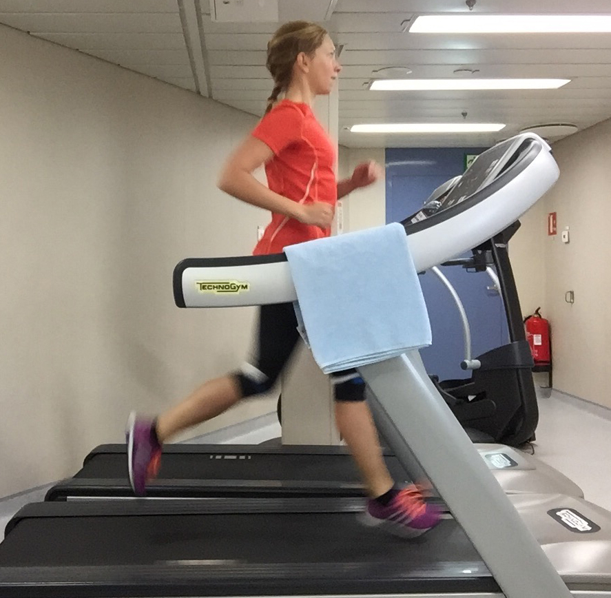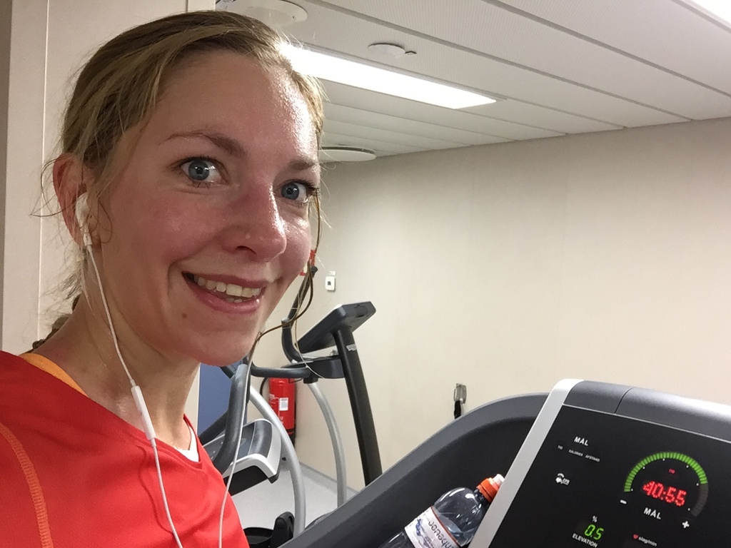 De siste to ukene har jeg vært på sjøen, som jeg er i perioder på grunn av jobb. Heldigvis har vi både tredemøller, styrkerom og matter her ute, ja i bunn og grunn alt jeg trenger. Det har gitt meg en fin-fin mulighet til å starte opp siden det ikke er stort annet å gjøre her ute før jeg går på skift. Jeg har fått til flere runder med styrketrening og det kjennes godt at det er lenge siden sist, støl er stikkordet. Runder på mølla har det også blitt. I dag med skikkelig go’følelsen, sånn at jeg ikke hadde lyst å stoppe. Følte meg heldig da, heldig for at jeg har løpingen, og at den kan gi meg glede selv inne på en tredemølle.