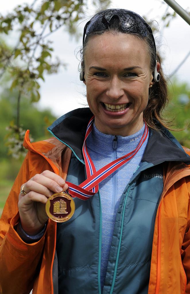 Nok en medalje for gjennomført halvmaraton. Da blir man glad, vettu ;) Foto: Jarle Mordal; Sunnmørsposten.