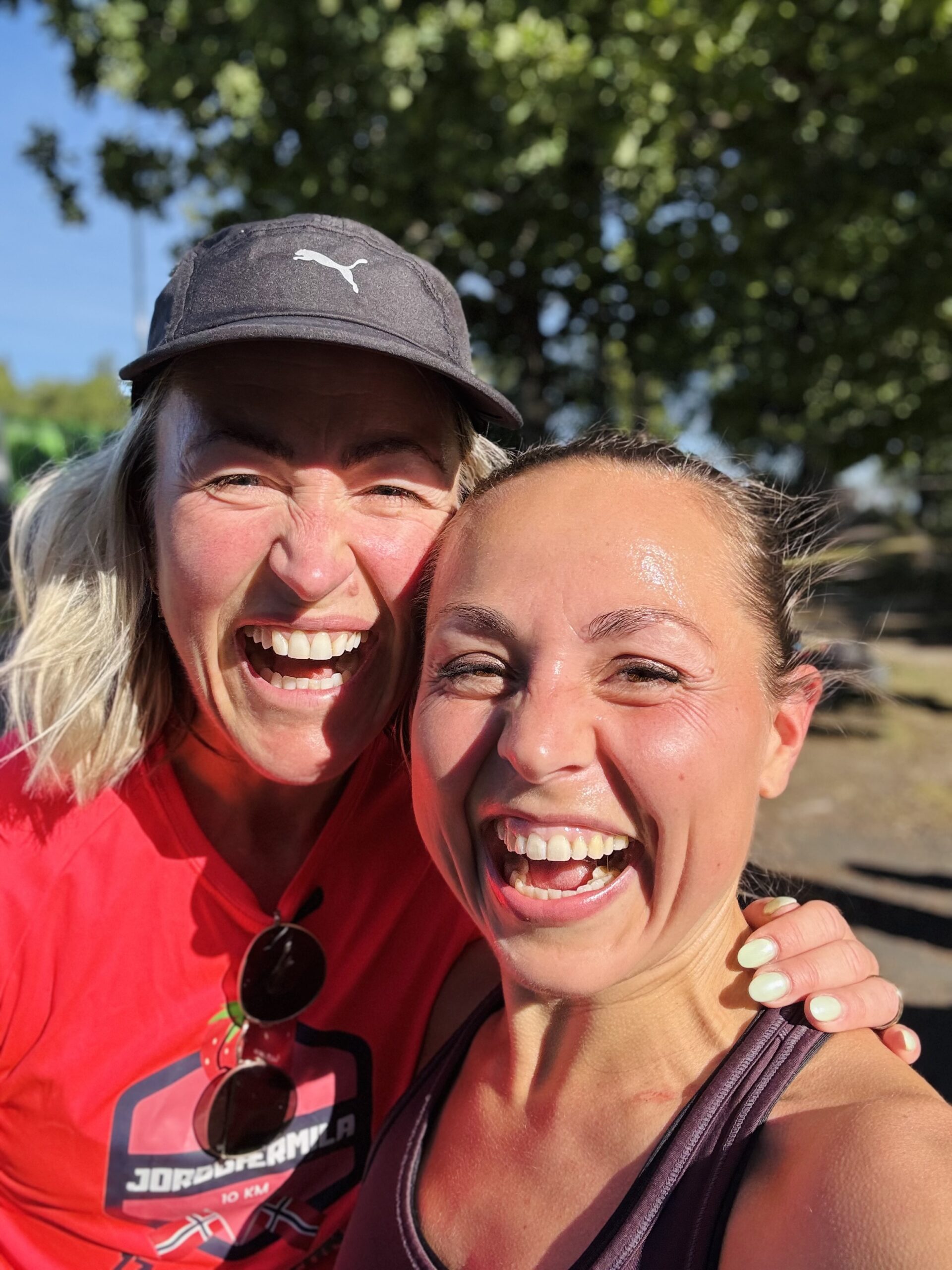 Jeg har også kost meg med flere Parkrun ved Berger stadion på Nesodden. Eller lidd meg gjennom, om du vil. Det er jo vondt underveis å løpe kort og raskt, men godt etterpå. Som bildet av meg og Stine Næss-Hartmann illustrerer godt. Vi tok oss ut bra begge to den 23. august, og var superblide og fulle av endorfiner etter målgang.