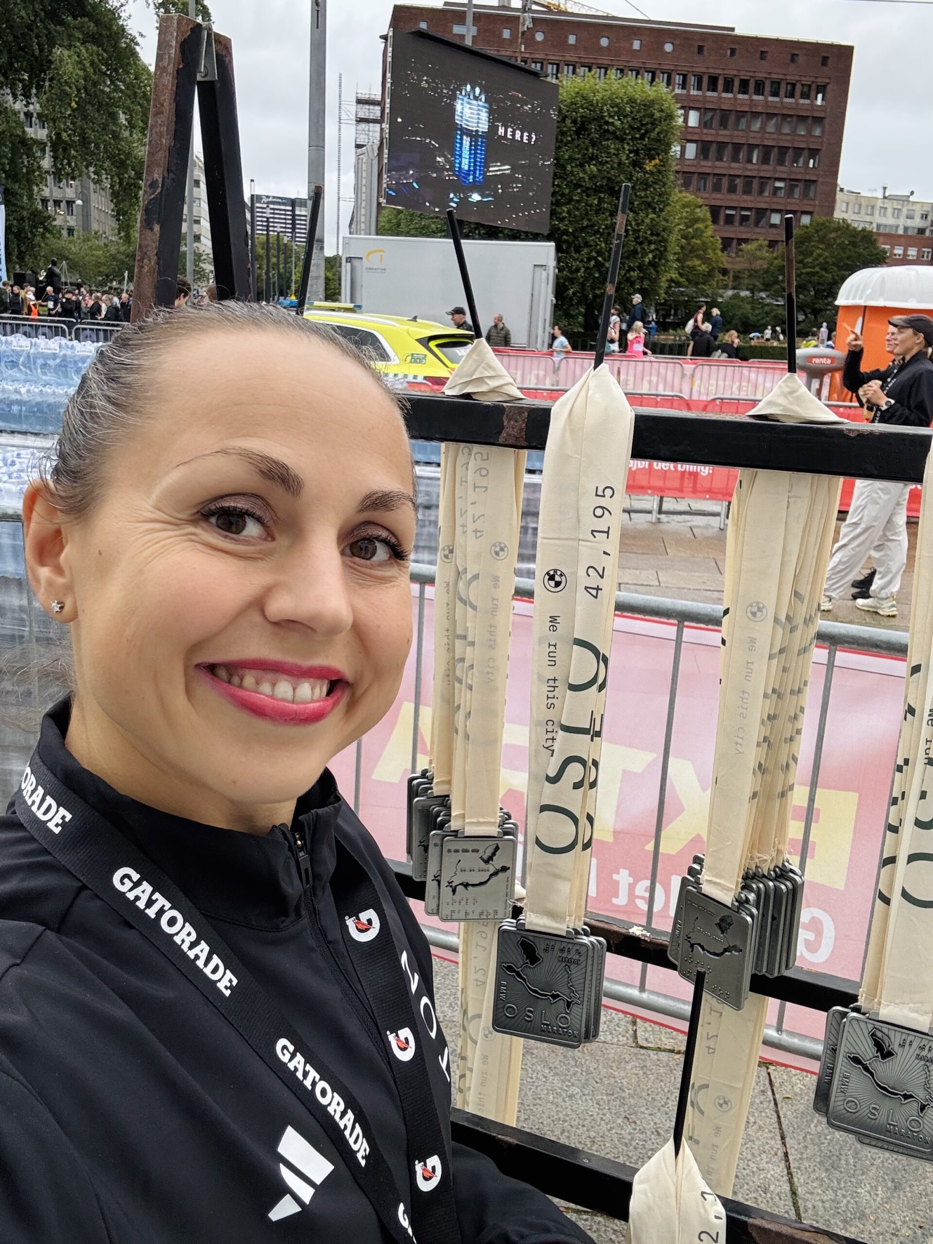 Da valgte jeg å jobbe som frivillig istedenfor. Delte ut medaljer til løperne og opplevde det som veldig givende. Det er så mange store følelser blant slitne løpere som kommer i mål; glede, tårer, utmattelse, mestring, lettelse, kraft med mer.