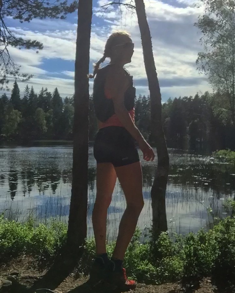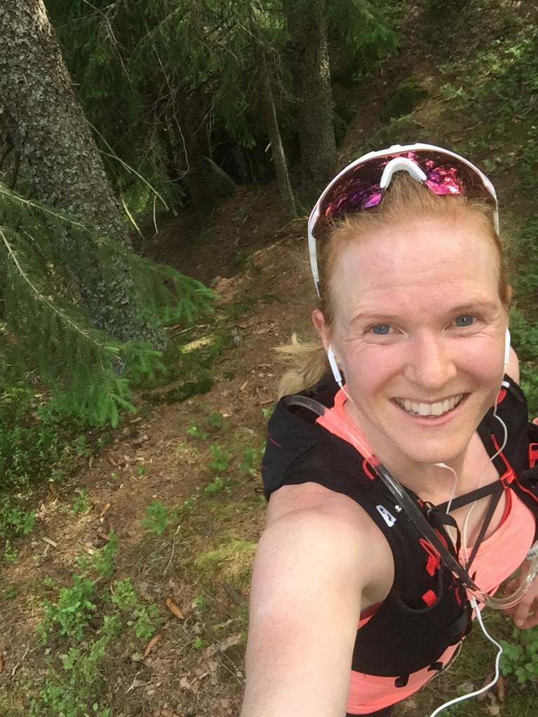 Det var en smal sti som bare ble smalere og smalere før jeg plutselig oppdaget at det ikke var noen sti hverken foran eller bak meg lenger. Jeg sto midt i skogen med blåbærbusker opp til knærne og fikk en litt bedre forståelse av hvorfor terrengløpere ofte har knelange strømper. Og dyrevenn som jeg er ble jeg en smule engstelig for at jeg kunne komme til å tråkke en huggorm på halen. I tilegg oppdaget jeg at det foran meg gikk veldig bratt nedover og å satse på å løpe utenfor sti var litt vel vågalt. Men det er jo nettopp det at det føles litt som å dra ut på eventyr når jeg løper på nye stier som gjør at jeg har blitt så glad i å løpe i terreng.