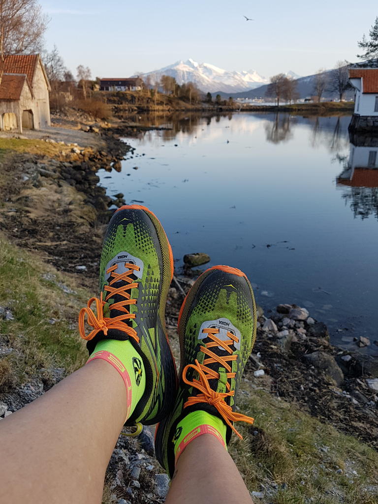 I denne prosessen har jeg også lært meg å endre løpesteget, fra å lande på hel til å lande mer mot forfot. Det var ikke noe jeg bevisst bestemte meg for, men jeg oppdaget at problemet på forsiden av leggene ble mindre da jeg løp på forfot, jeg har derfor fortsatt med det. For meg fører forfotløping til at steget kortes ned og frekvensen lettere økes. Jeg holder uttalelsene veldig subjektive her, for dette er et felt der mange og mye menes. Utfordringen med forfotløping er at det krever sterke leggmuskler og det tar tid å utvikle for min del. Jeg har ikke våget å pushe meg på distanse av frykt for at plagene jeg har hatt skal oppstå igjen. Leggmusklene skal også klare å takle lengre distanser og det må trenes opp.