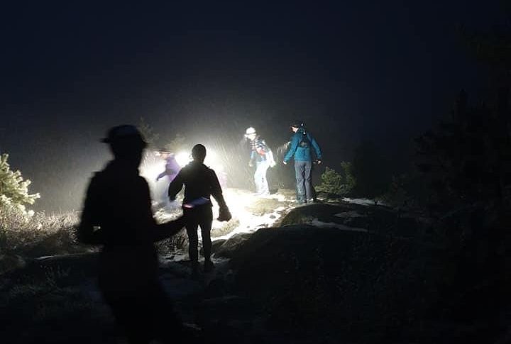 Siden toppene ligger rundt omkring i Grenland ble det en del bilkjøring mellom flere av toppene – rullende matstasjon er et annet ord for det. Vi startet i Siljan og allerede på Nordkollen kunne vi se at regnet kom ned som snø i høyden. Da vi skulle i gang med topp 2 var det allerede blitt mørkt, og hodelyktene måtte frem. En salig blanding av piskende regn og tett snødriv holdt på gjennom hele natten. På noen av toppene var det ren julestemning, et magisk winter wonderland og gjerne opp mot 20 cm snø.