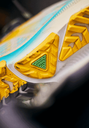 Overdelen er lett og pustende, men strikket tight nok til at ikke rusk fra skogen havner inni skoen. I tillegg er overdelen forsterket med 3D-printede elementer som gjør skoen mer robust uten at det går utover hverken komfort eller vekt.